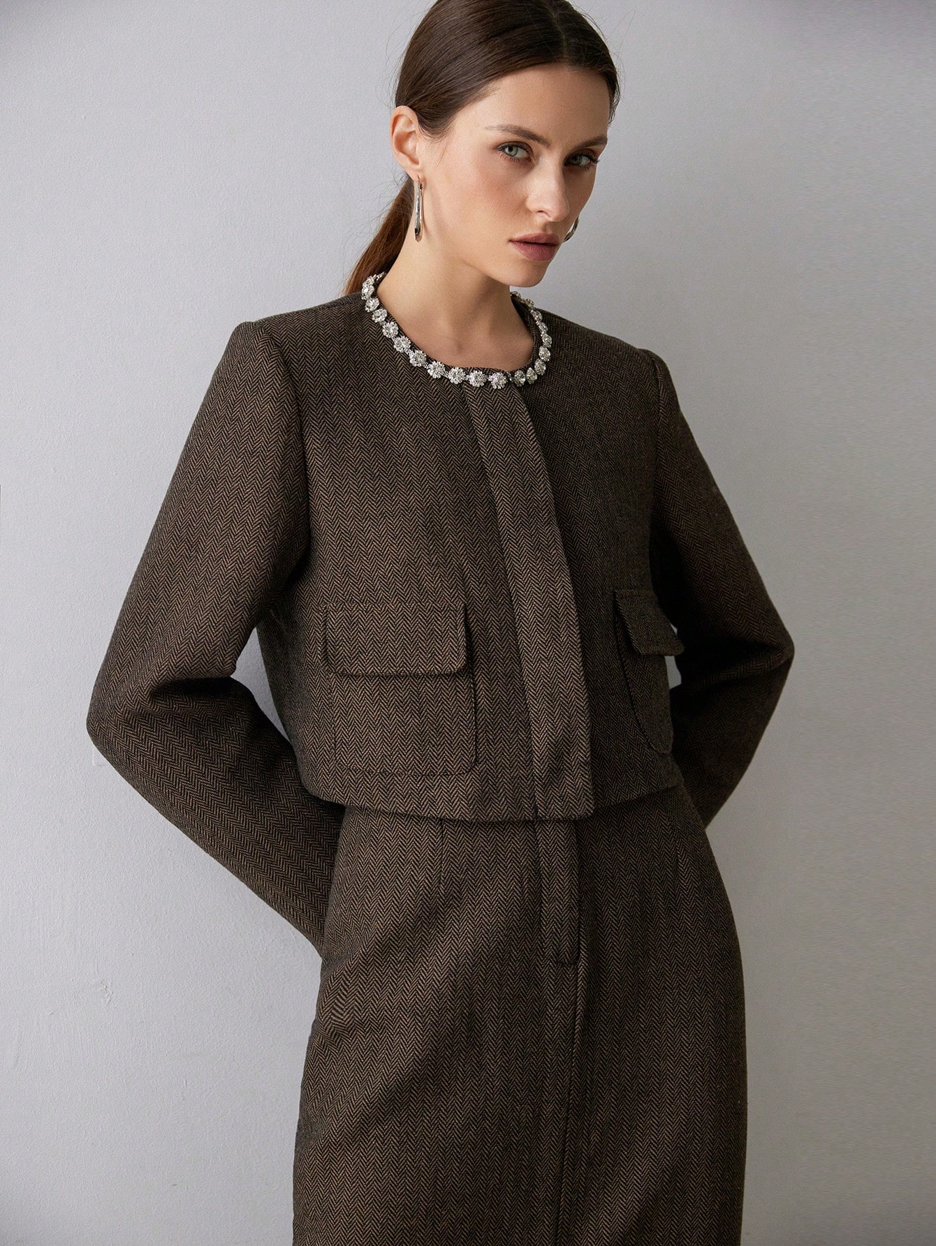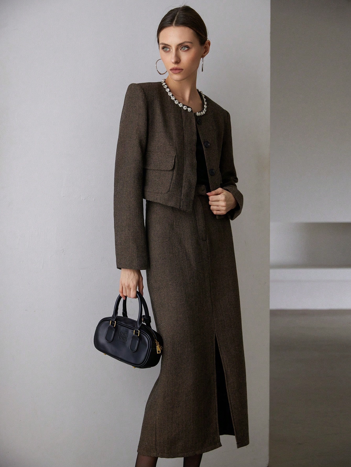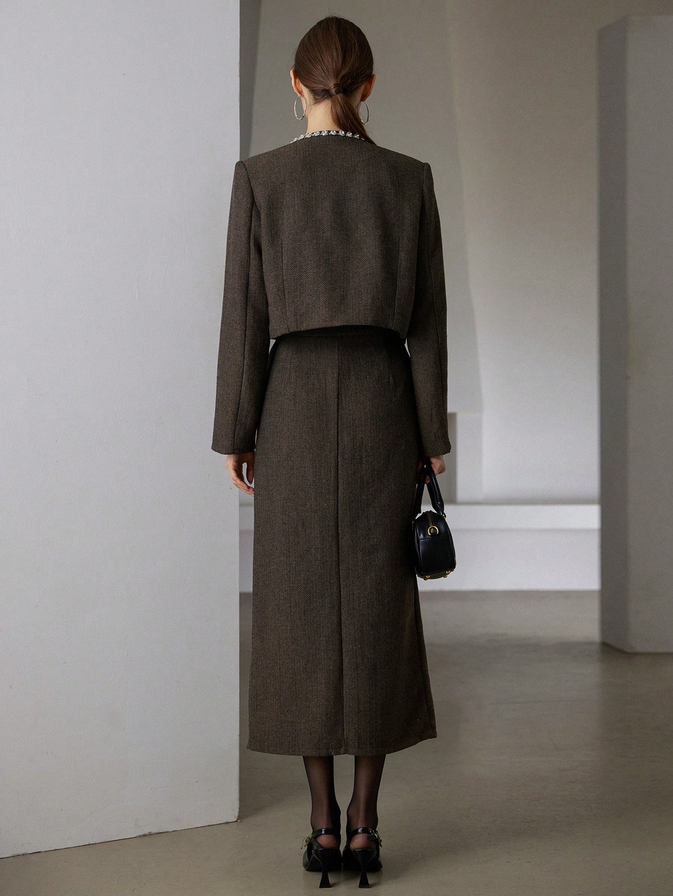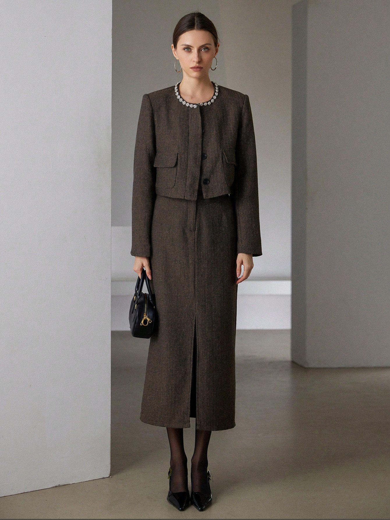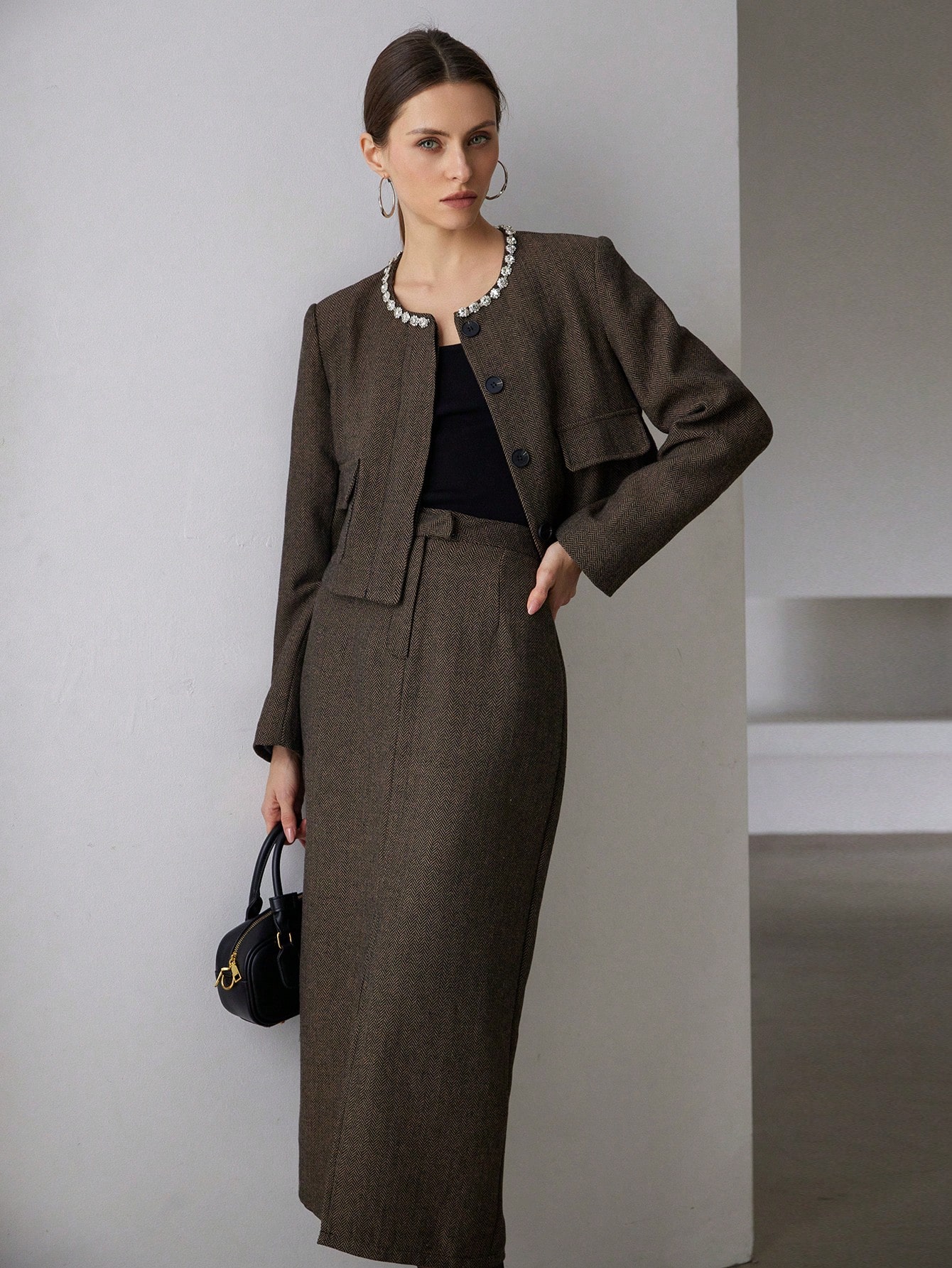 2pcs Women’s Elegant Jeweled Long Skirt Set Elegant Business Casual Women