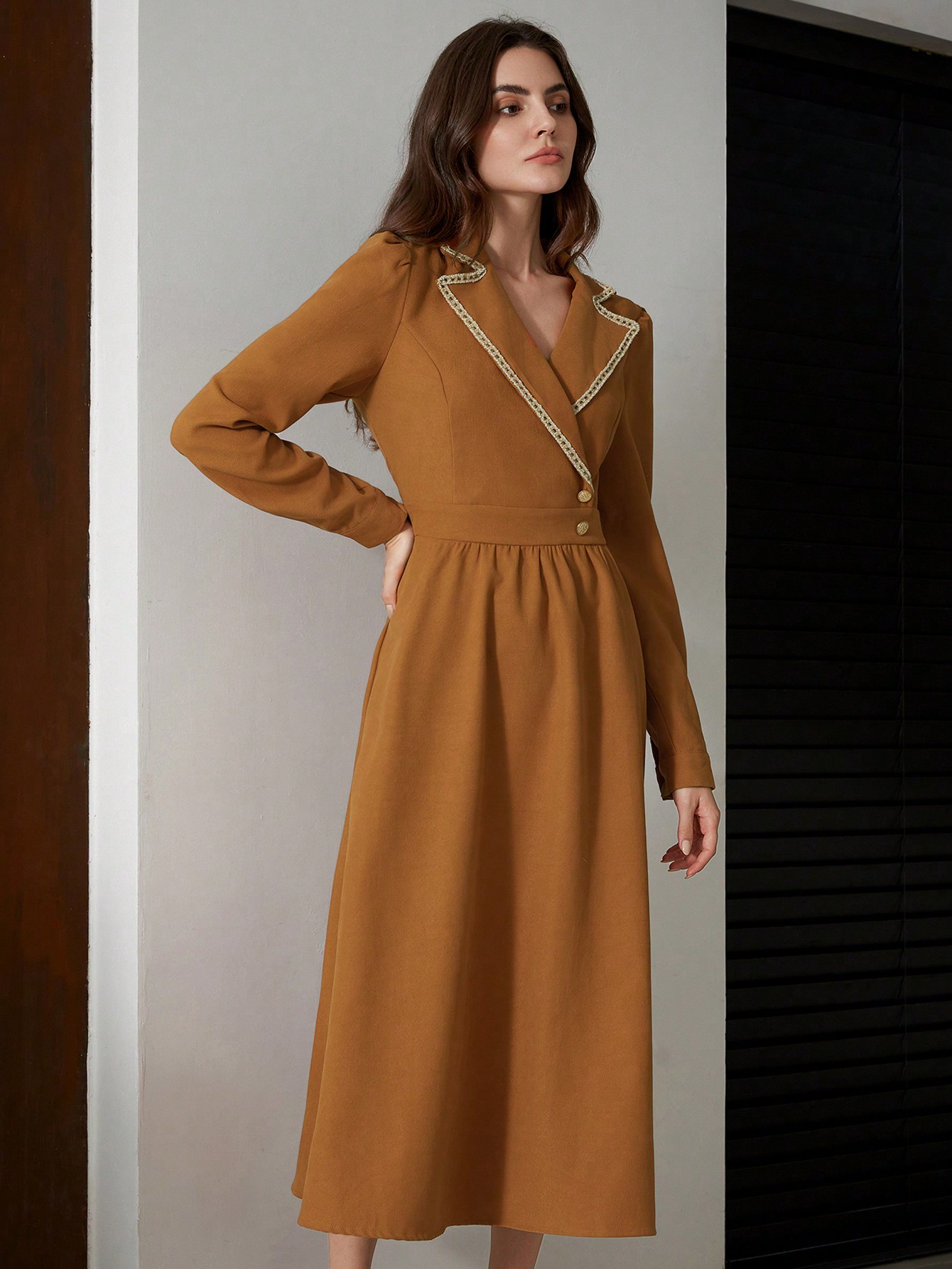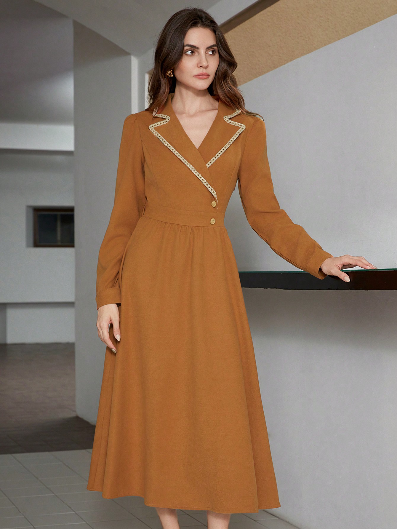 Black Friday x Star Picks  French Elegant Lapel Collar Waist Fitted Women Dress For Autumn Fall