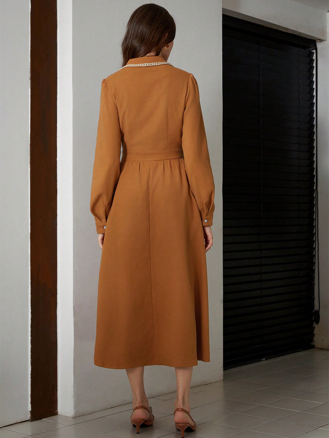 • Black Friday x Star Picks  French Elegant Lapel Collar Waist Fitted Women Dress For Autumn Fall