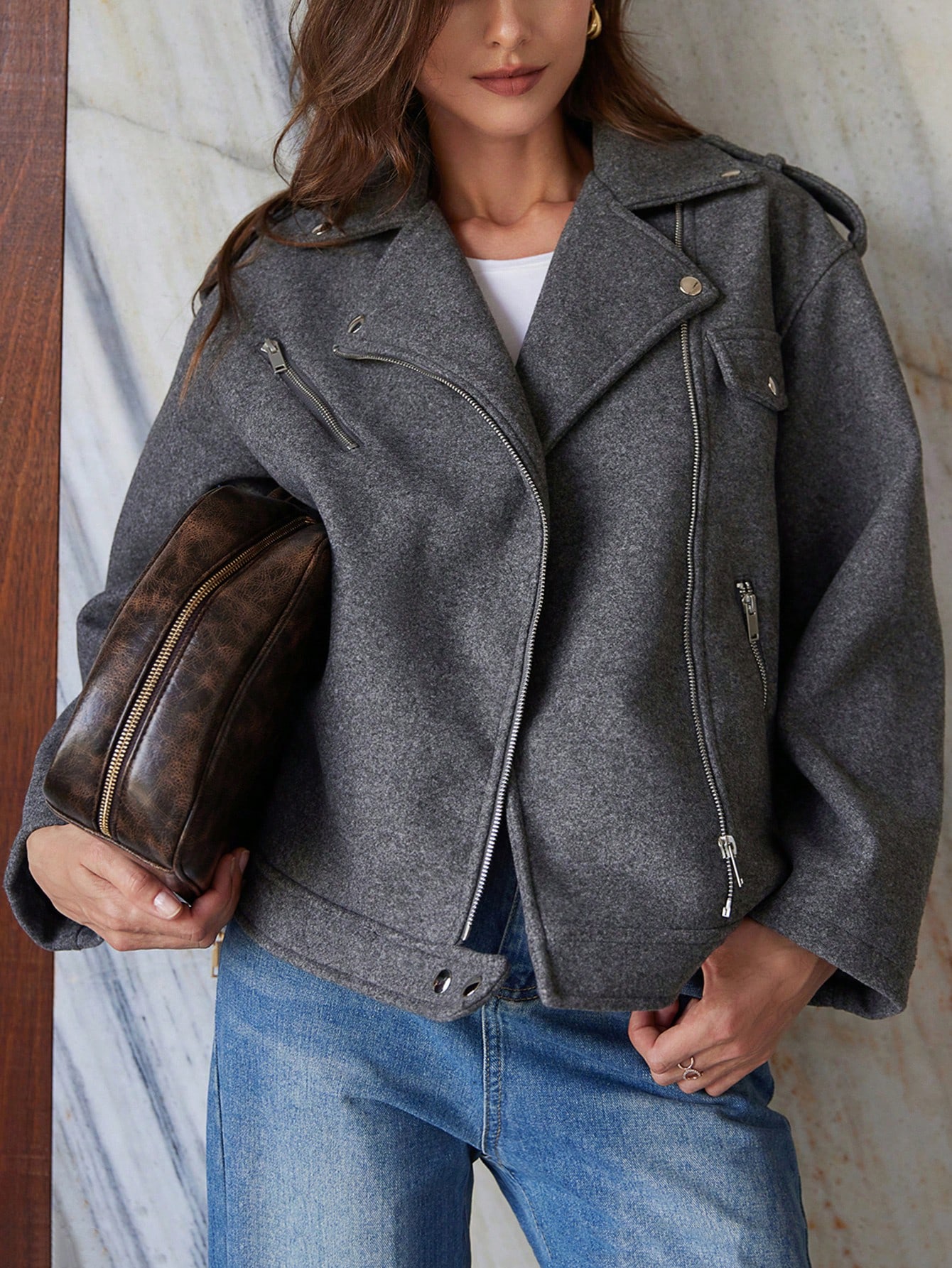 Casual Loose Fit Reversible Collar Warm Windproof Coat, Suitable For Teachers, Autumn/Winter