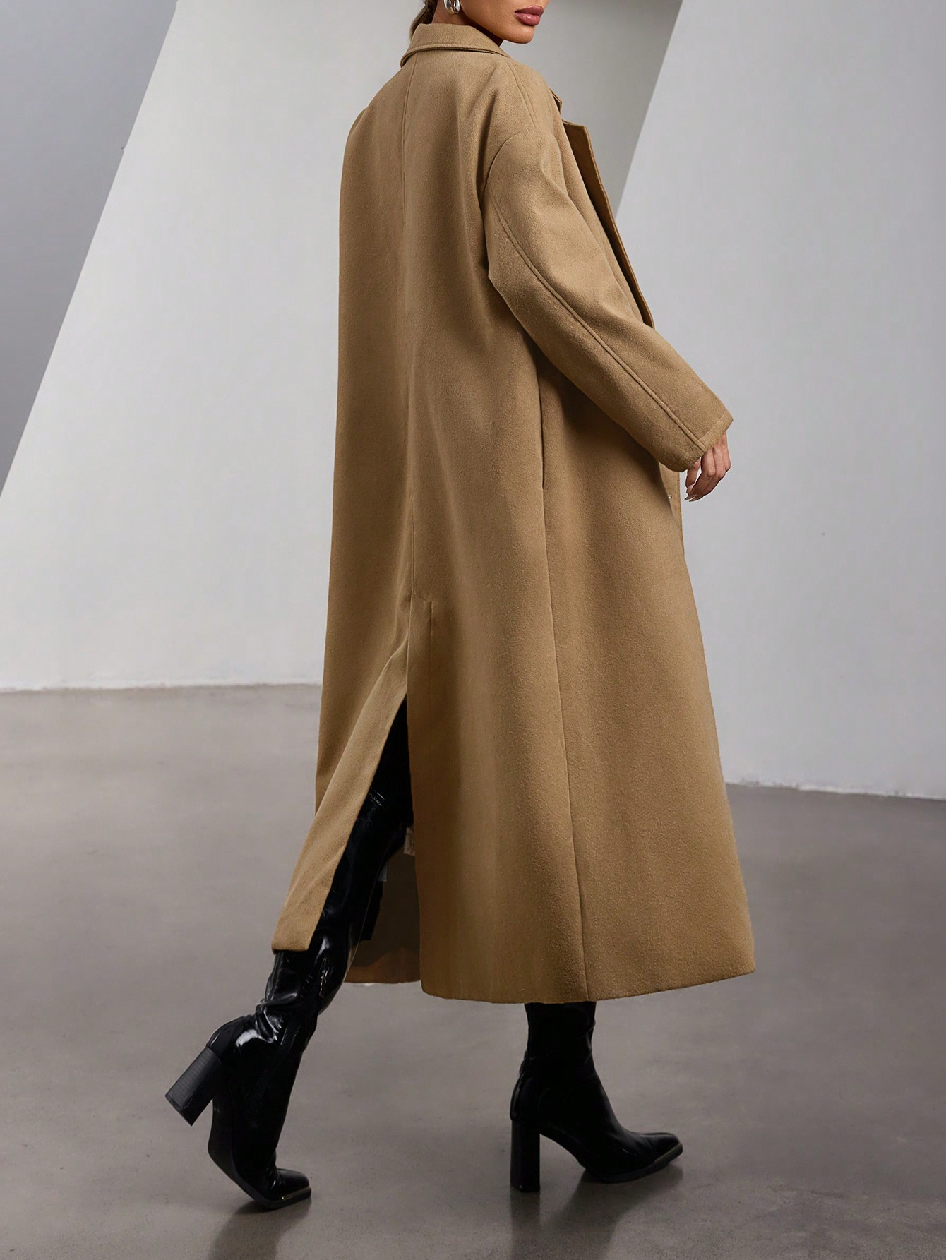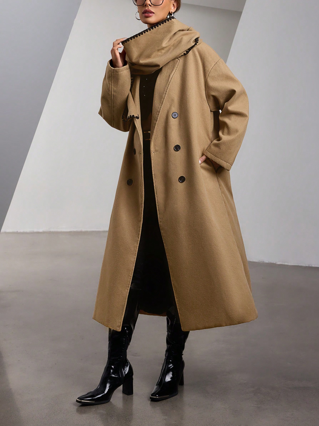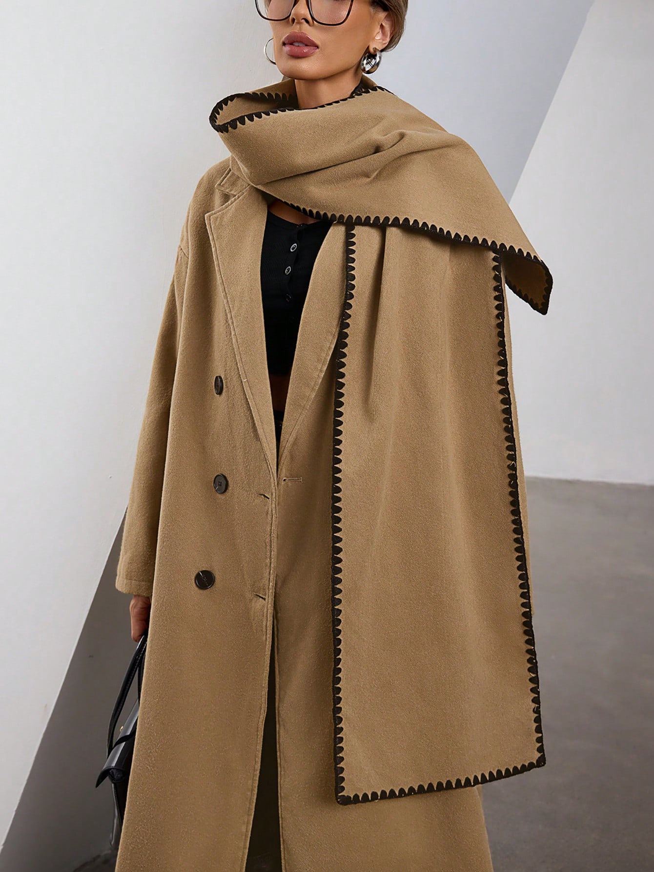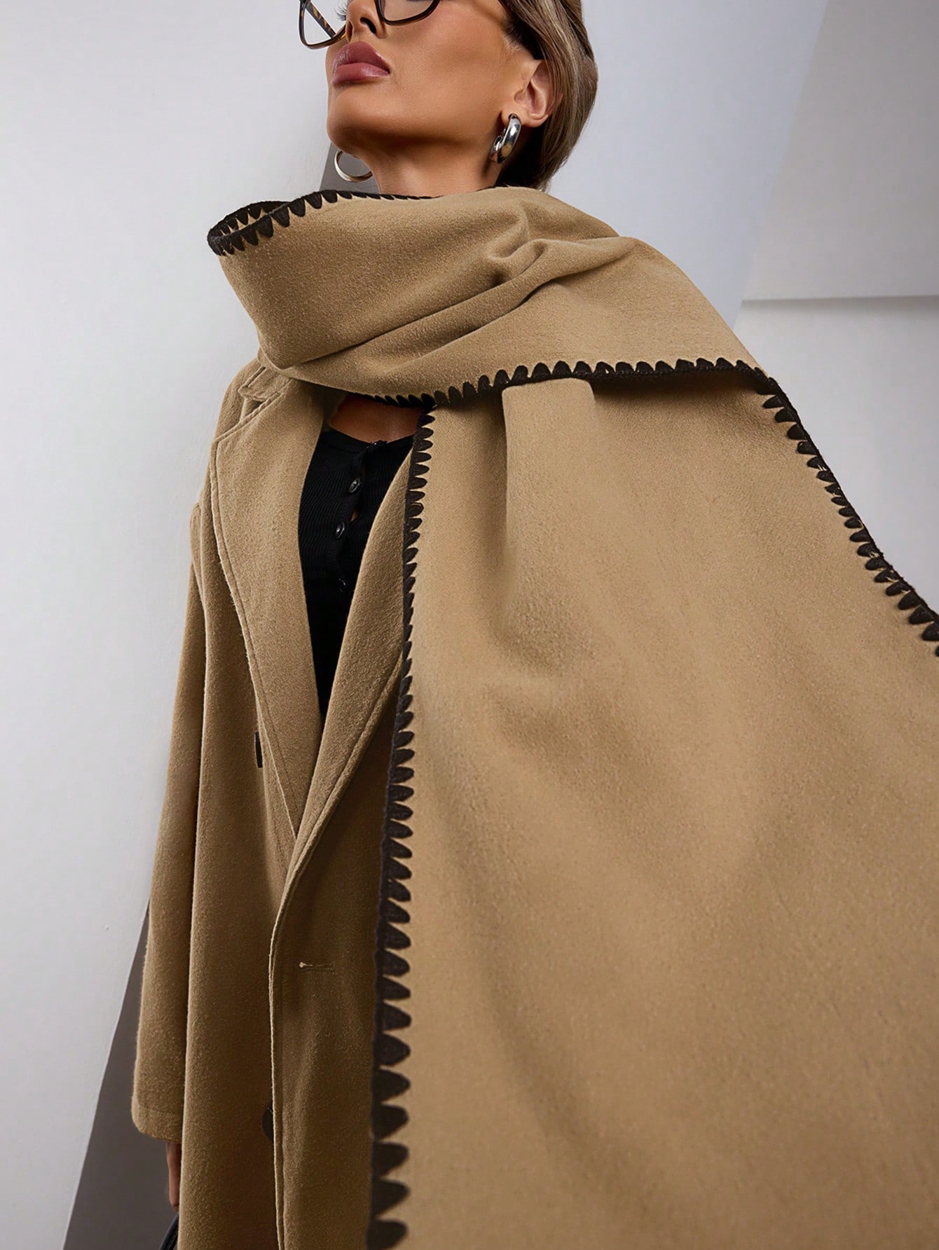 • Elegant Double-Breasted Detachable Contrast Color Shell Embroidered Cocoon Overcoat