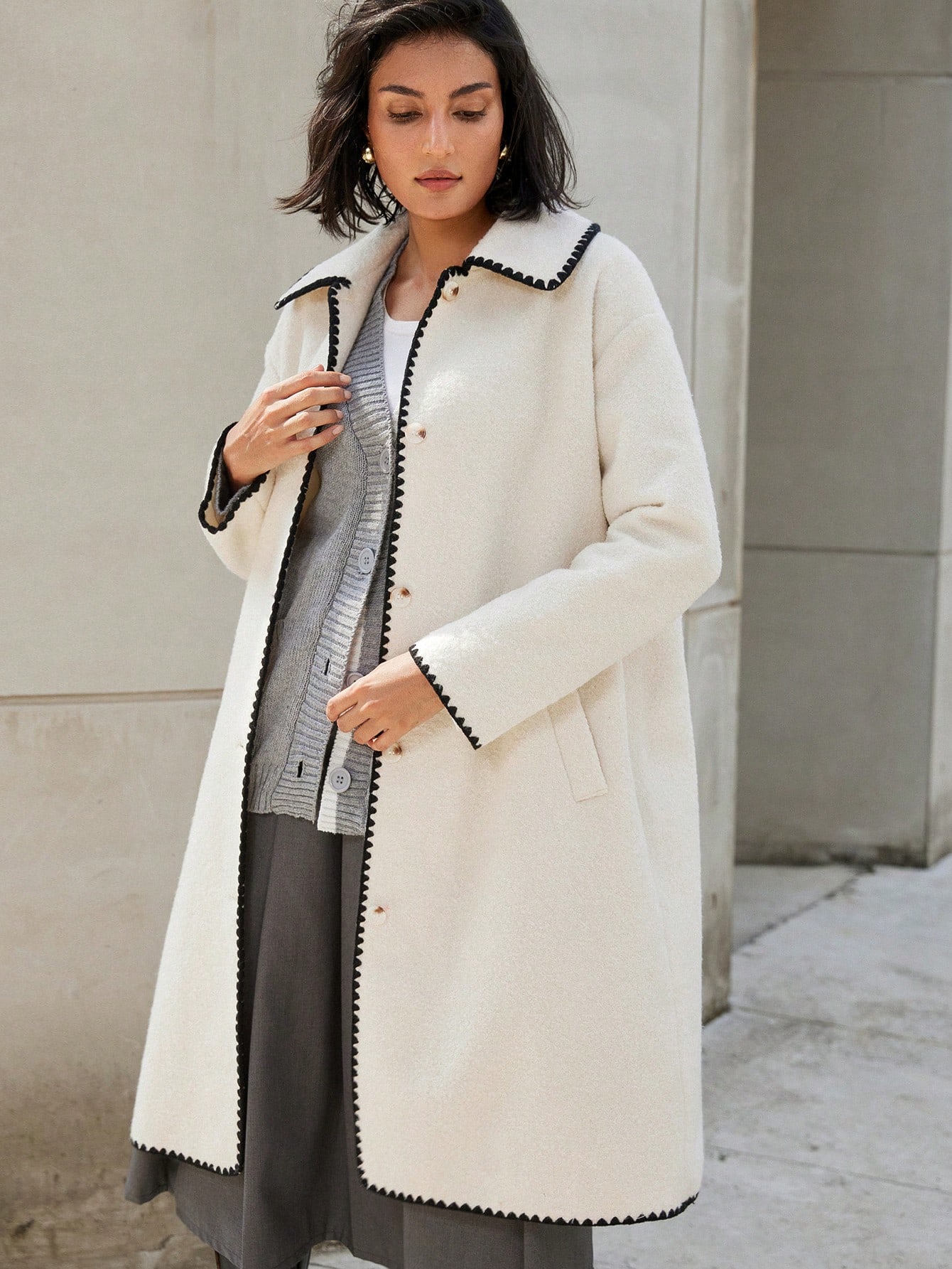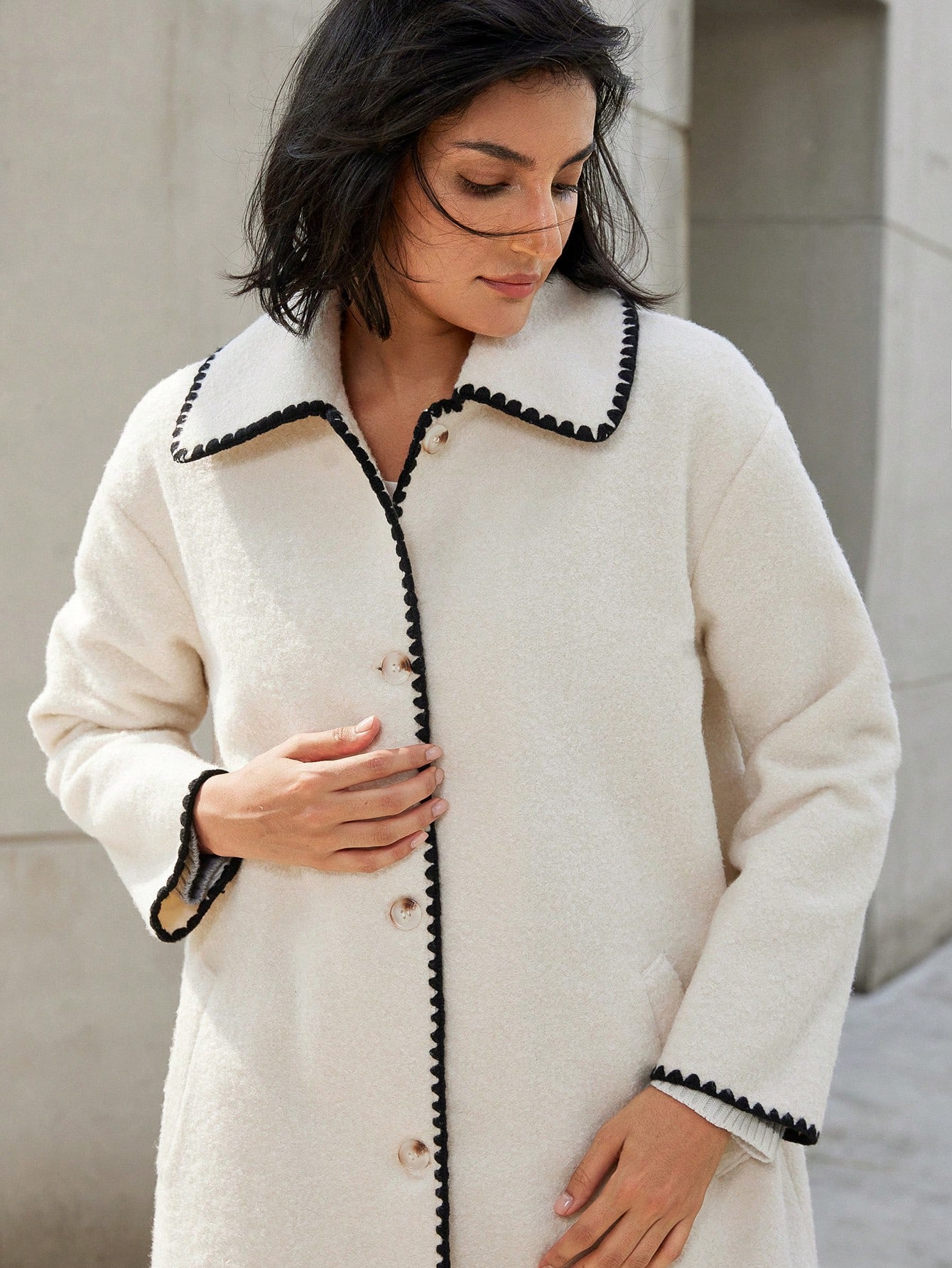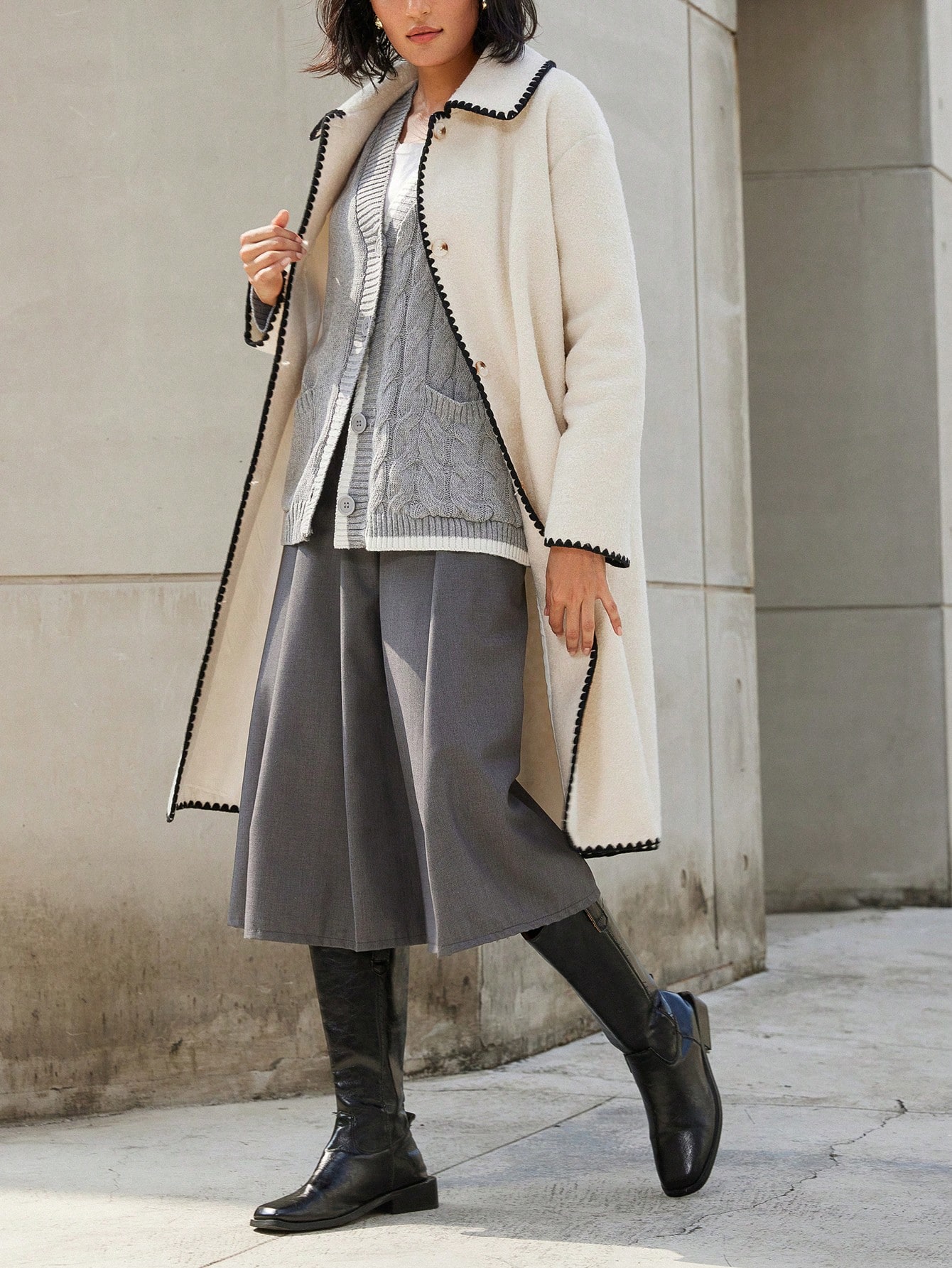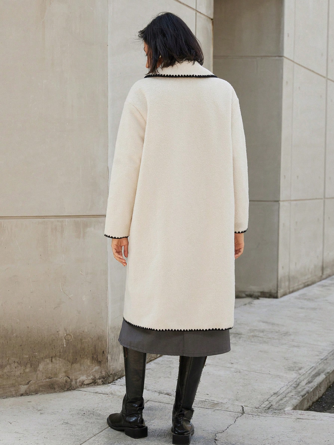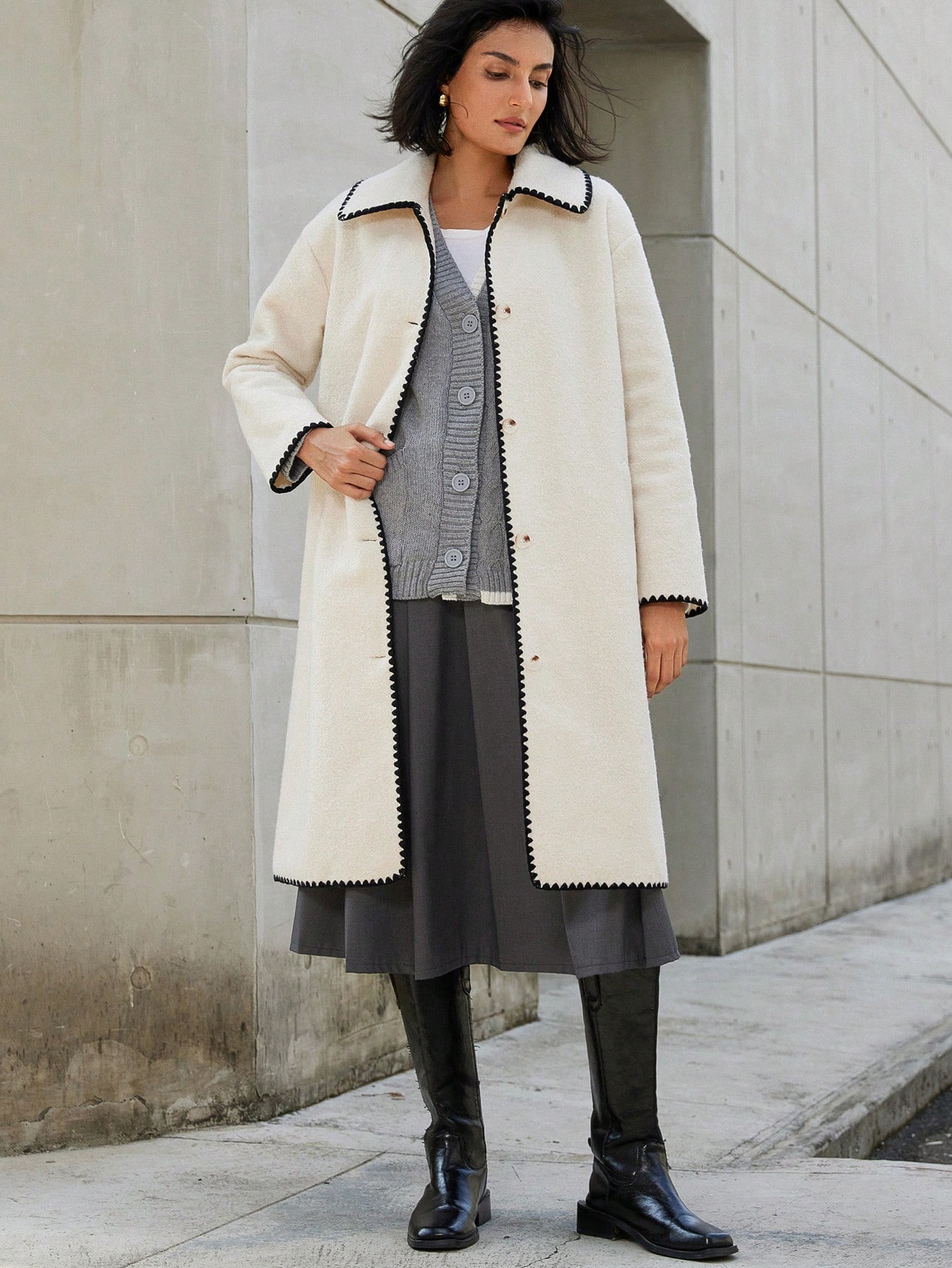 Fashionable Casual Loose Embroidery Trim Overcoat, Fall Clothes