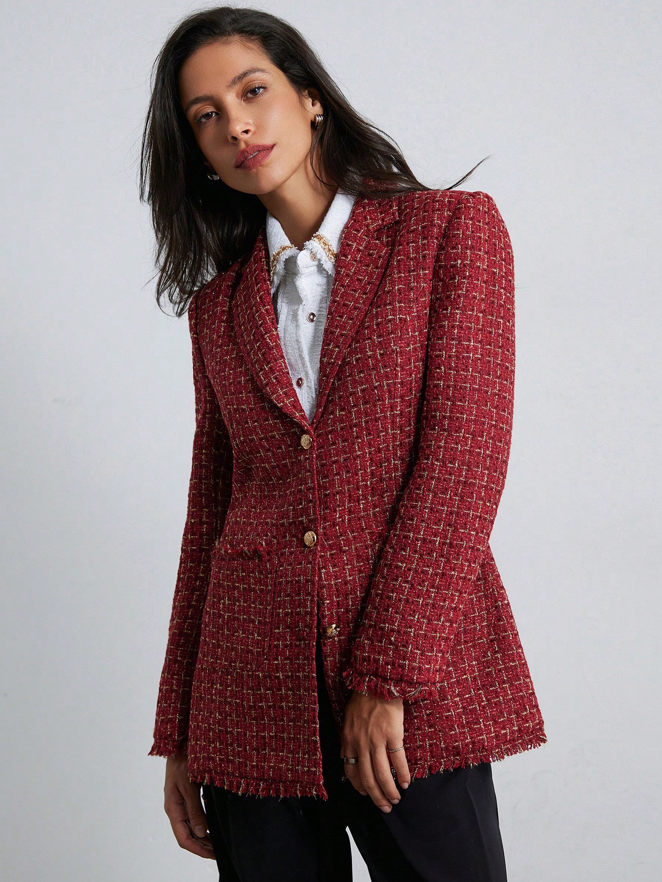 New Fashion Elegant Style Stylish Fringed Tweed Loose Fit Women’s Jacket Holiday Party Clothes