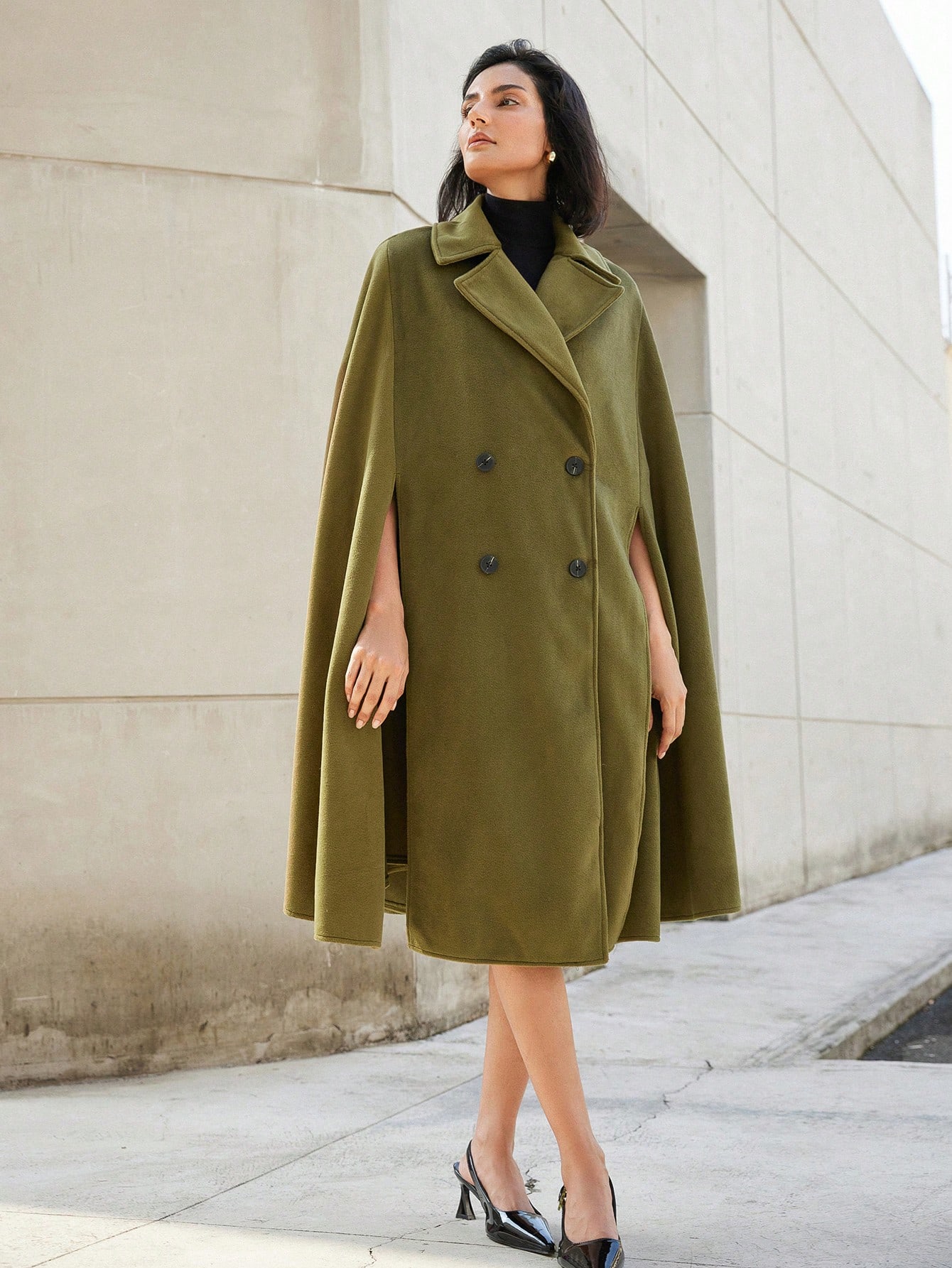 • Oversized French Style Fashion Loose Fit Long Cape Coat For Women, Elegant Look, Autumn