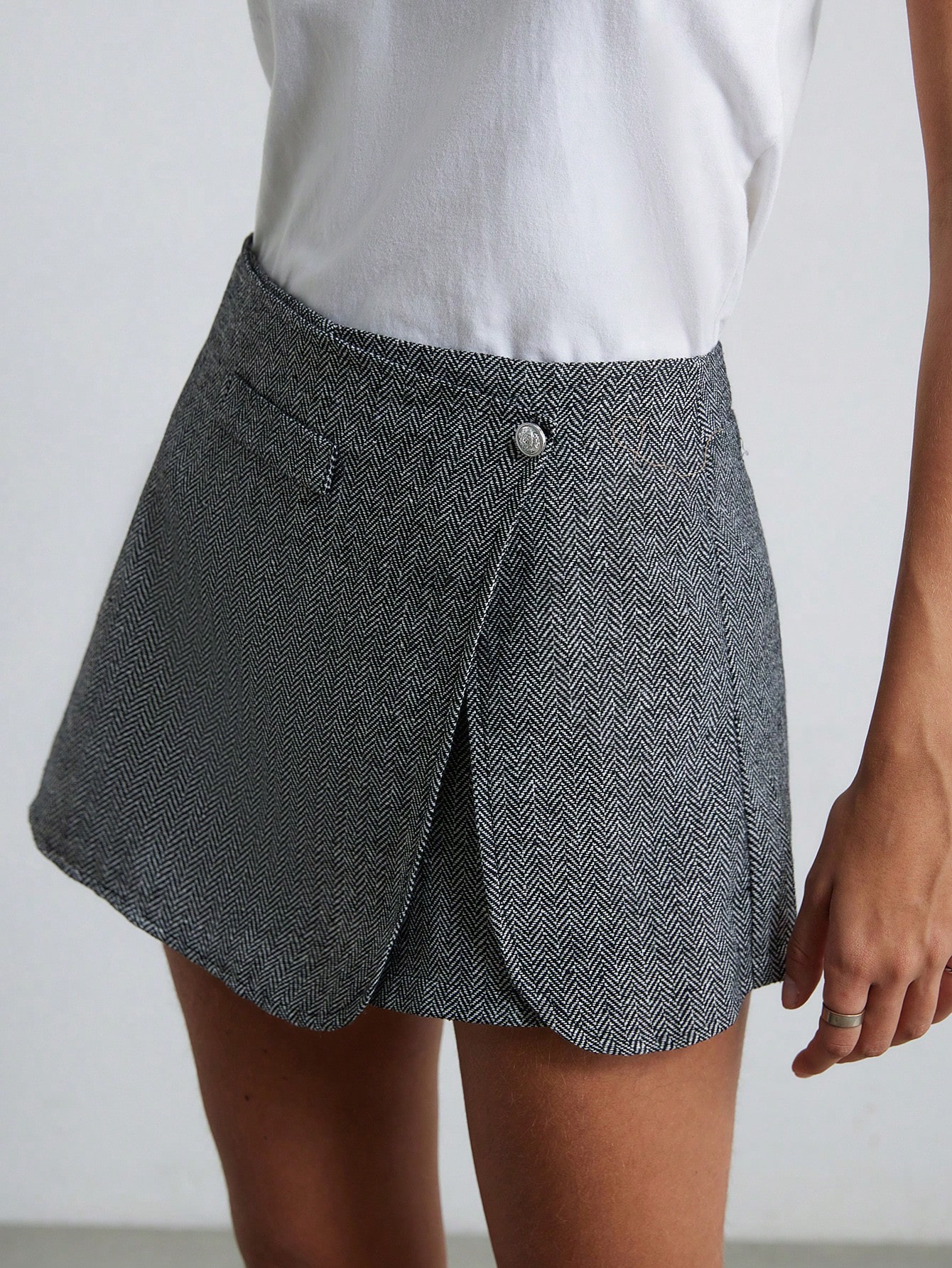 • Refined & Elegant Luxury MiuMiu Style Tweed Pocket Design Women Fashion Wide Leg Pants