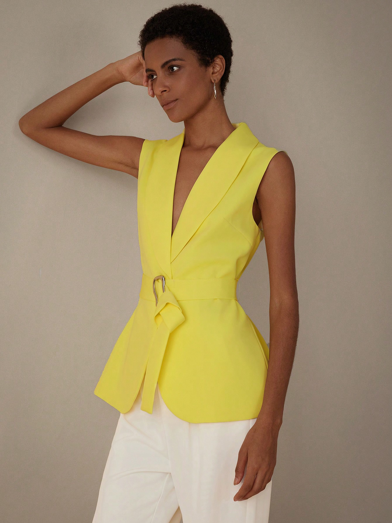 • Solid Color Sleeveless Belted Suit Vest With Shawl Collar, Formal Women's Workwear Waistcoat