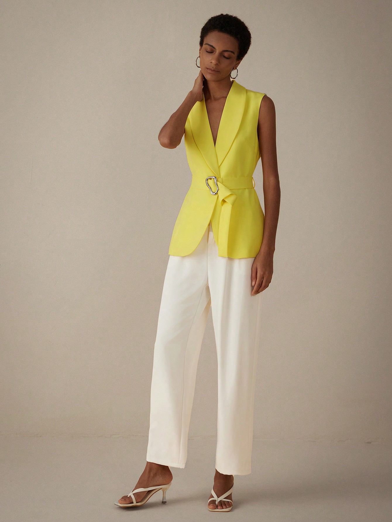 Solid Color Sleeveless Belted Suit Vest With Shawl Collar, Formal Women’s Workwear Waistcoat