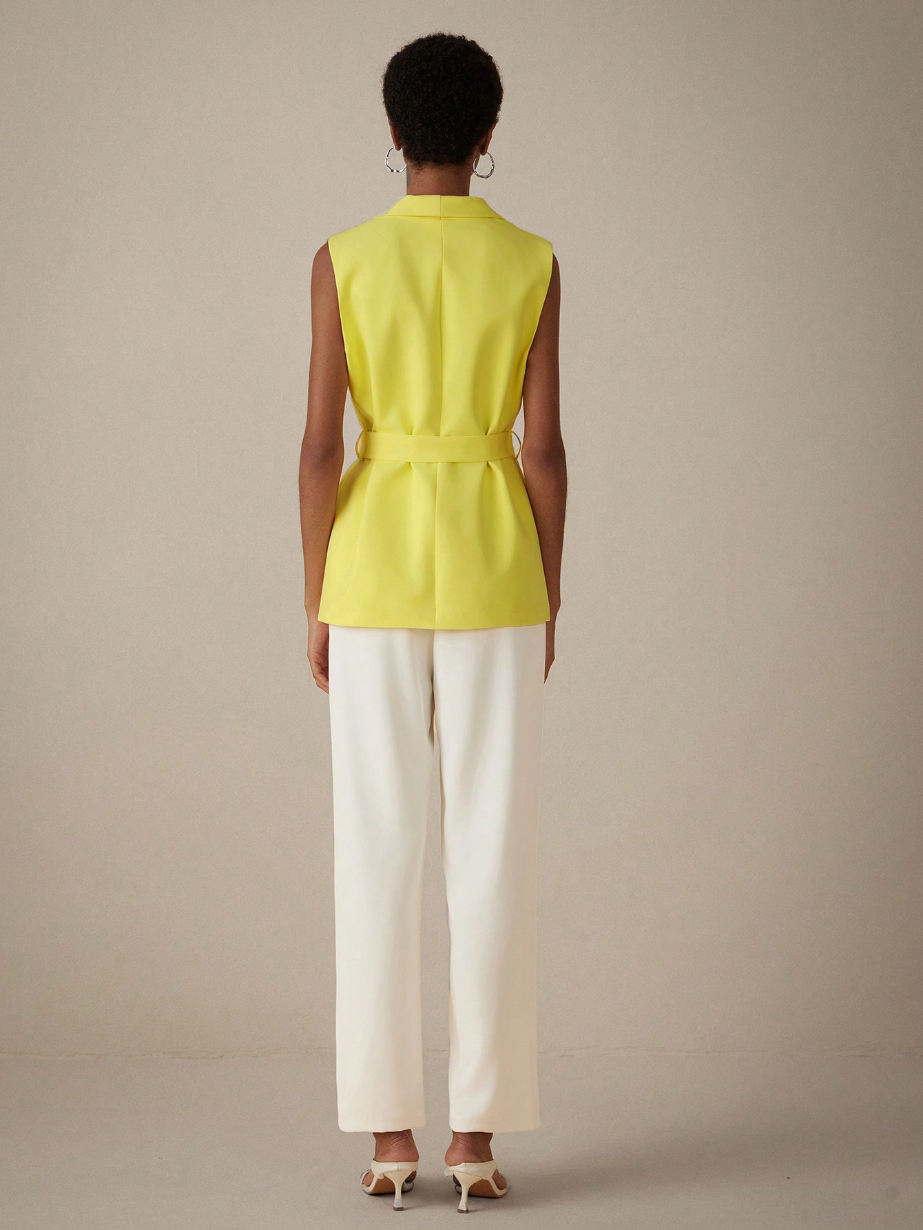 Solid Color Sleeveless Belted Suit Vest With Shawl Collar, Formal Women's Workwear Waistcoat