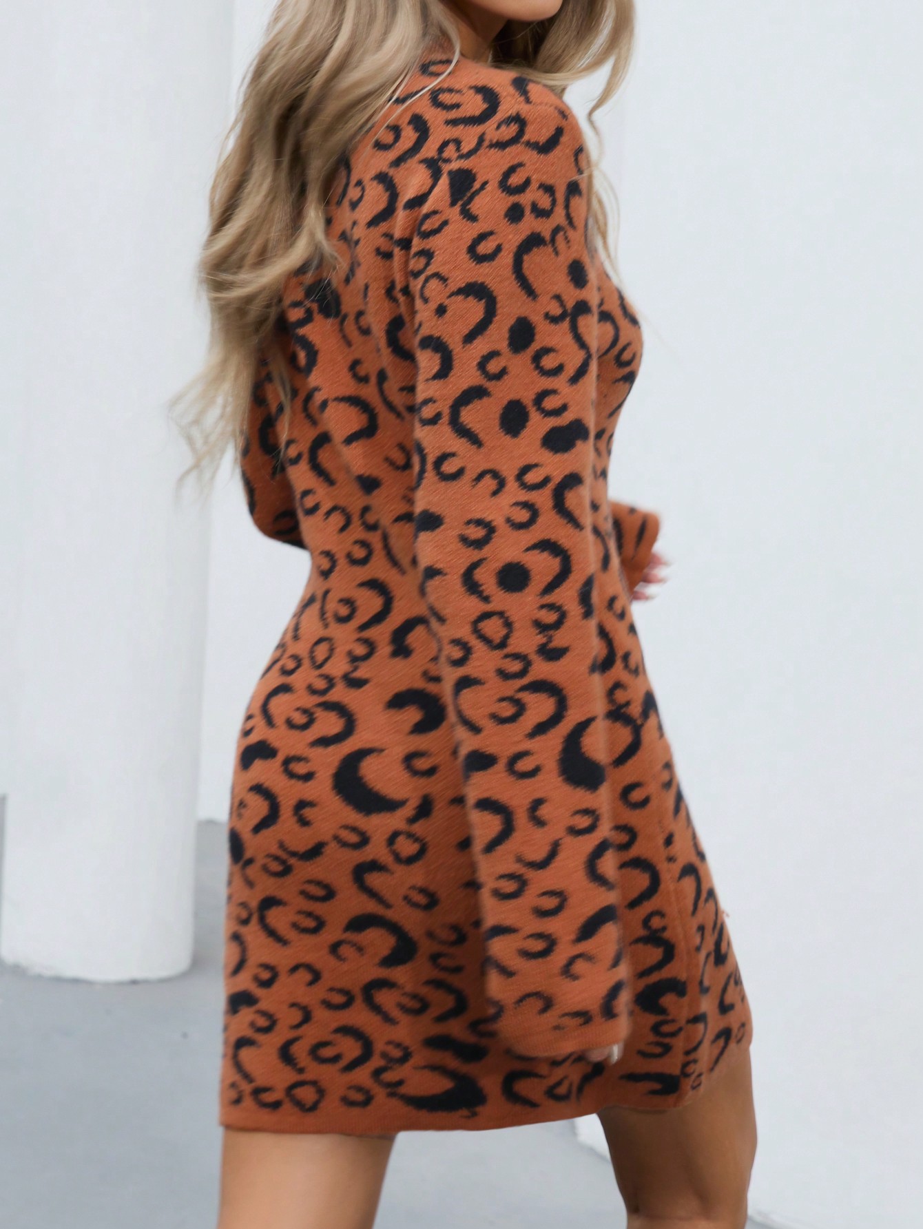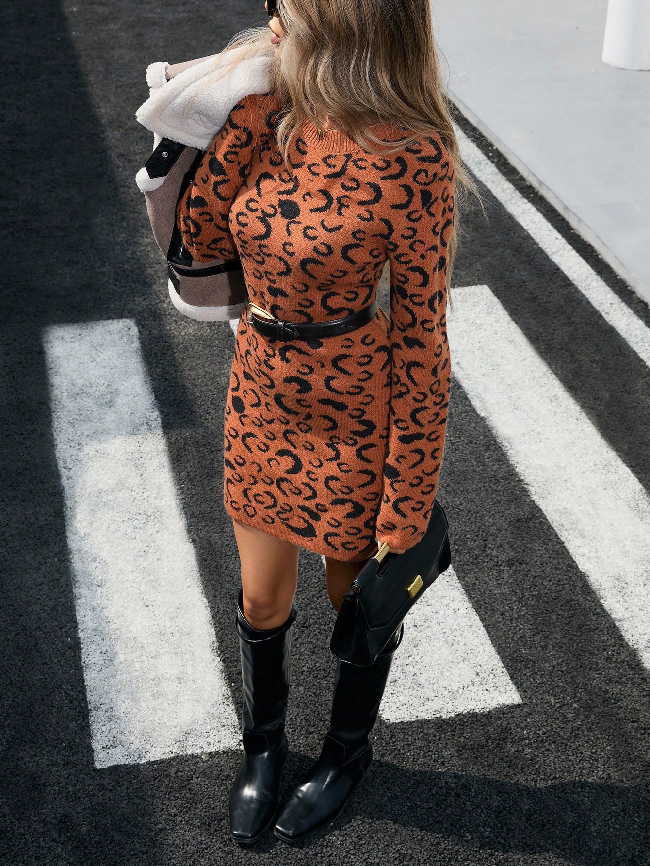 Women’s Autumn And Winter Round Neck Geometric Jacquard Hip Sweater Dress