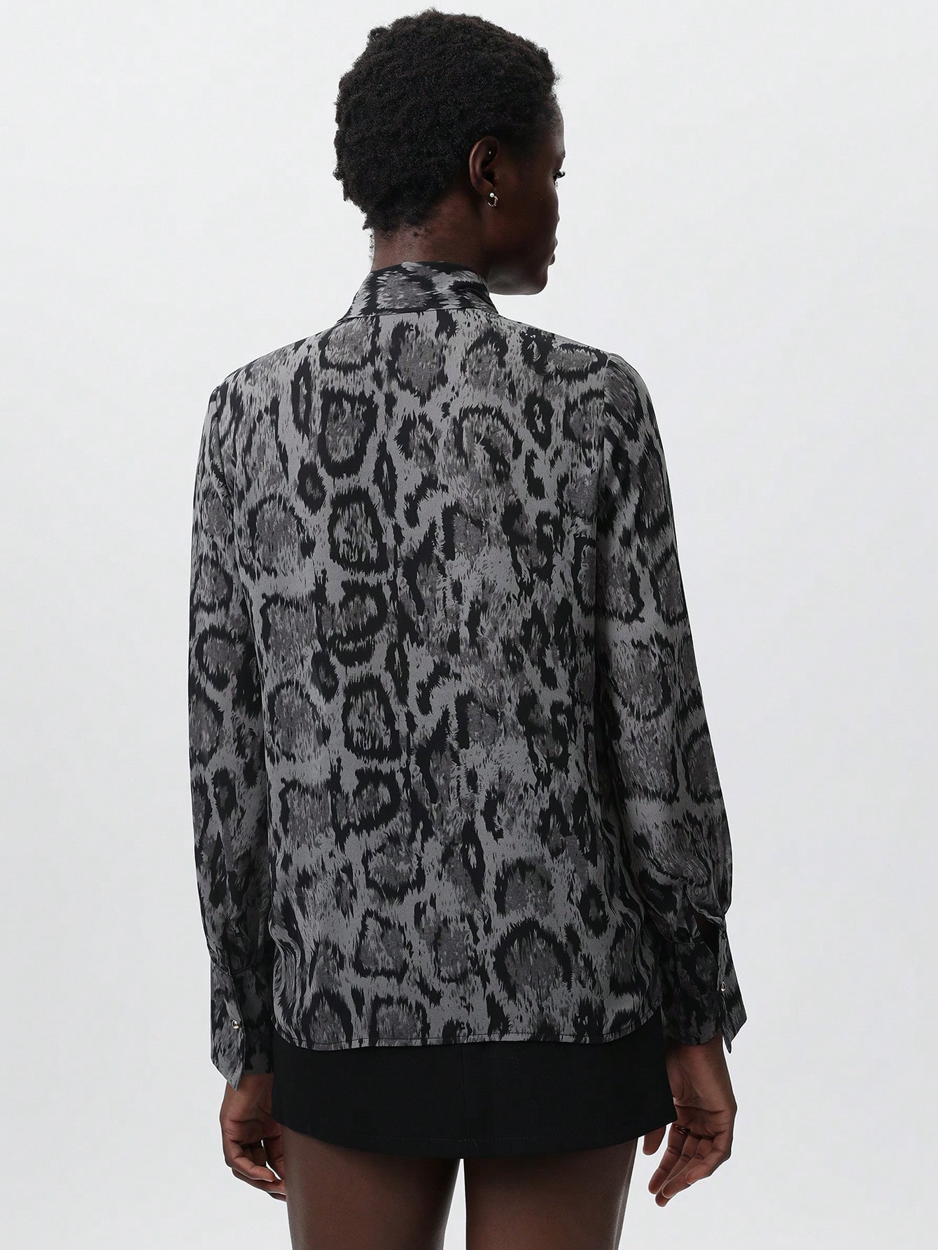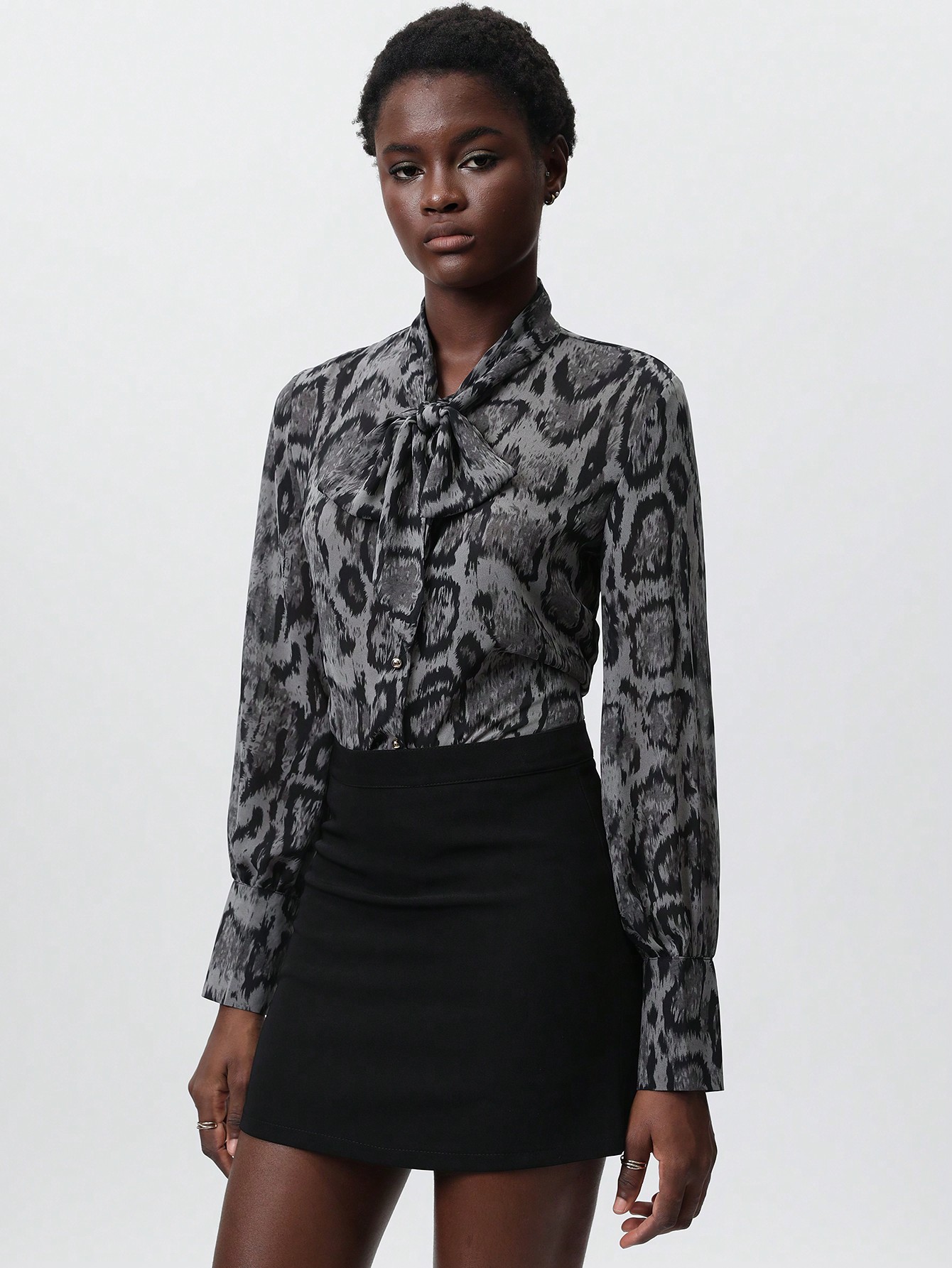 Women’s Chiffon Tie-Neck Animal Print Blouse, Floral Pattern, Suitable For Spring And Summer