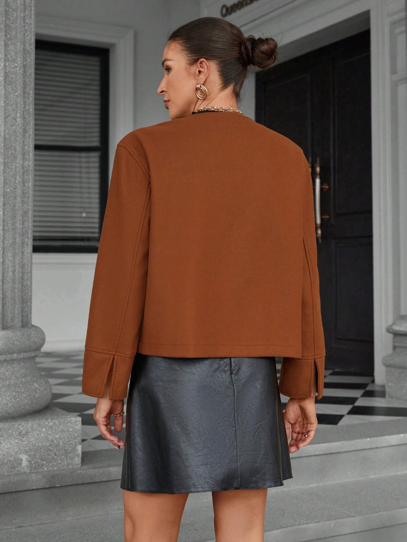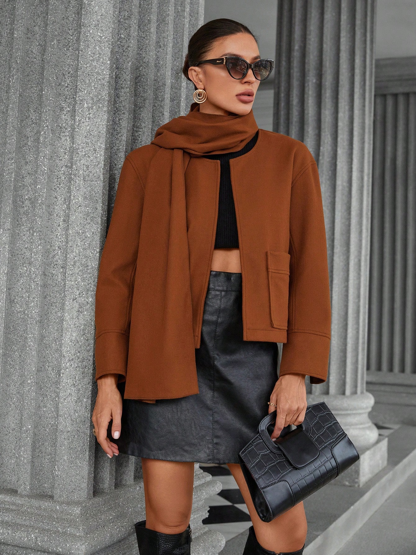 Women's Old Money Stlye Fall&Winter Removable Scarf Jacket Woolen Long Sleeve Cardigan Winter Coat