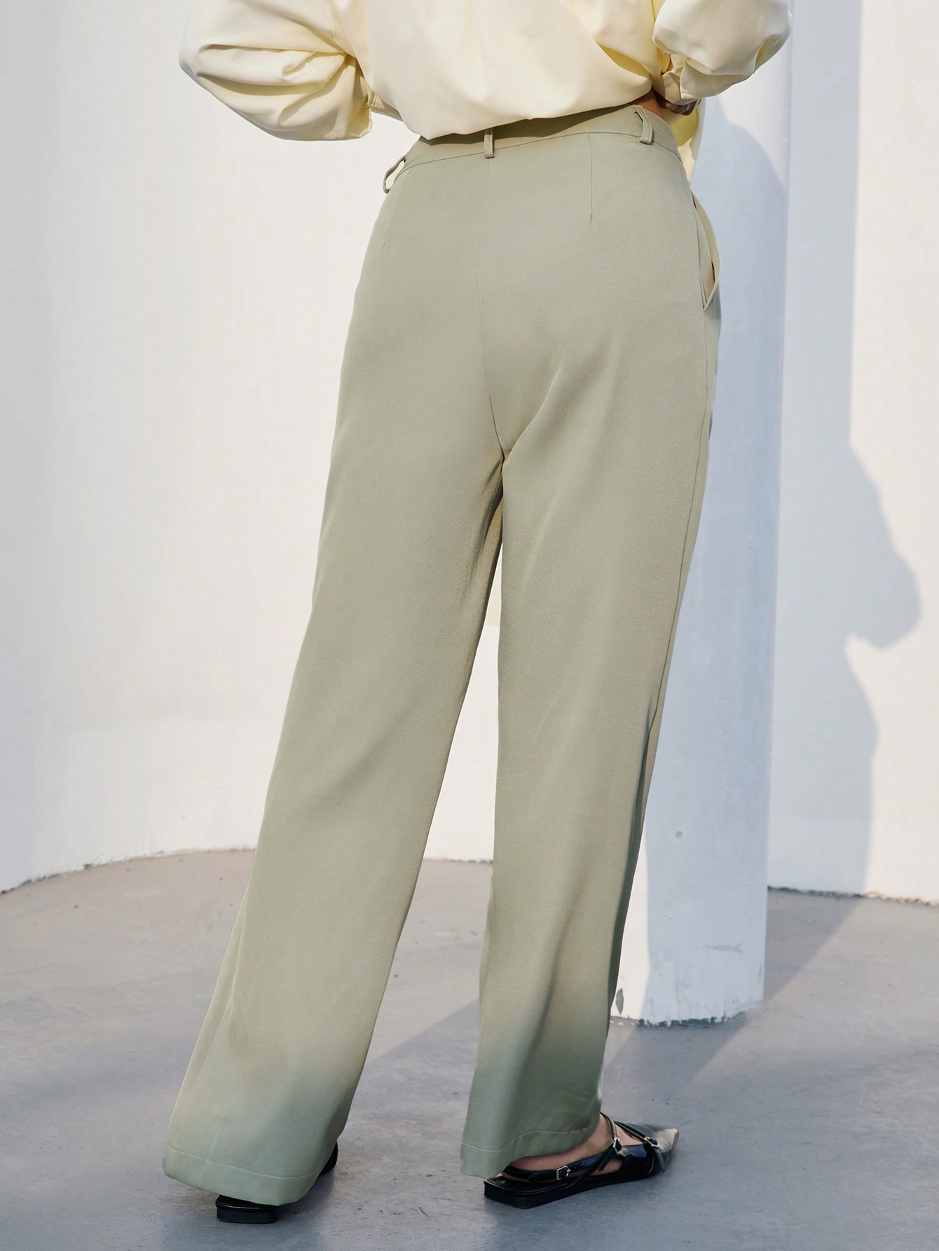 Women’s Solid Color Pleated High Waist Straight Leg Wide Leg Pants, Casual