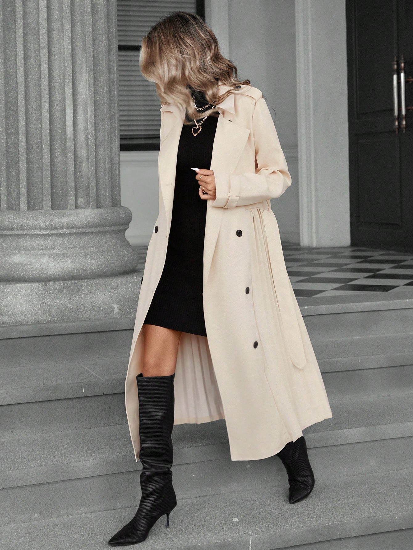 Women’s Spring And Autumn Long Sleeve Pleated Stitching French Elegant Elegant Trench Coat